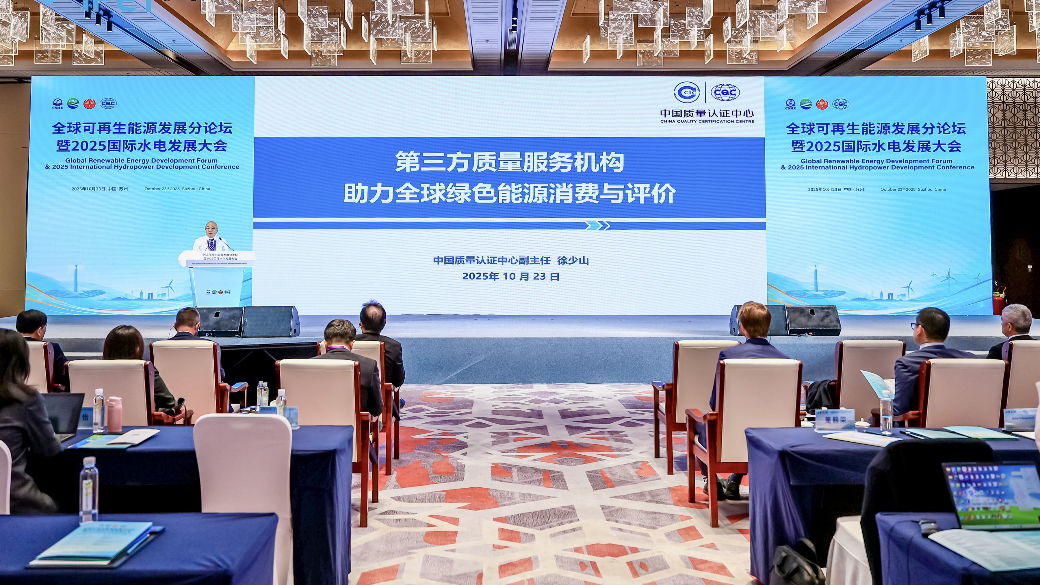 中国质量认证中心副主任徐少山受邀参加全球可再生能源发展分论坛暨2025国际水电发展大会并作主旨发言。他表示,中国质量认证中心长期深耕绿色能源领域,已建立起覆盖风、光、储、氢等新能源领域的认证评价体系,并在助力绿色电力消费评价上积累了丰富经验。建议与会各方共同深化第三方质量服务在新能源项目全生命周期的应用,通过技术创新提升绿色能源装备可靠性与效率;共同加强绿色能源标准互认与国际合作,推动建立全球统一的绿色能源产品认证体系;共同构建绿色能源消费评价与激励机制,引导社会各界积极参与绿色低碳转型,促进全球能源可持续发展。
