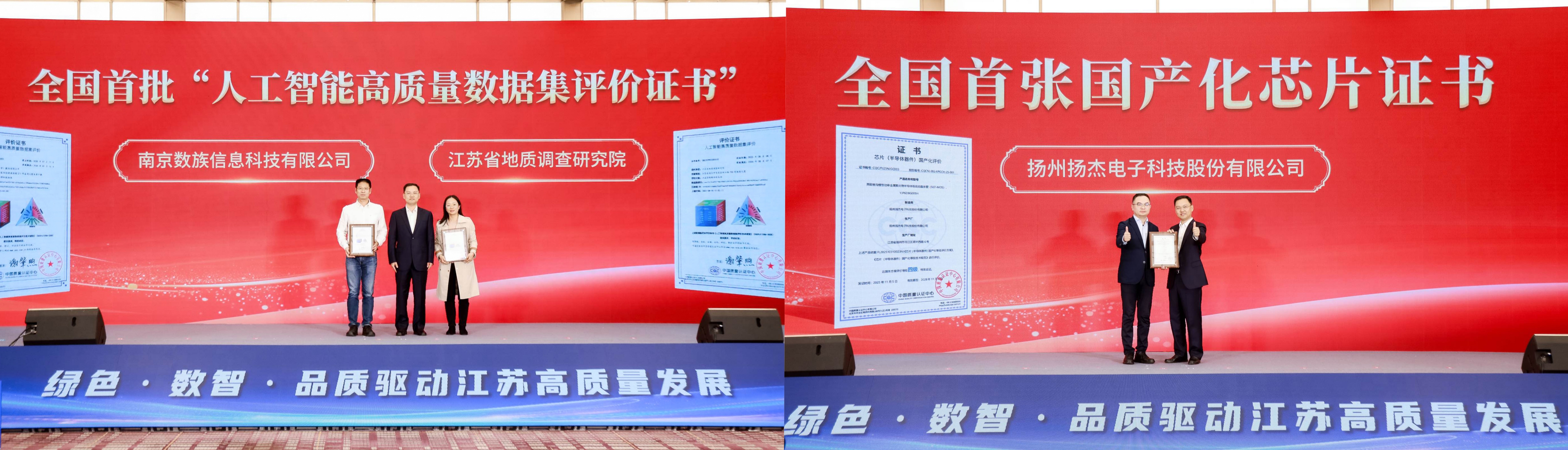 会上,中国质量认证中心发布《可信质量数据空间白皮书》和7类产品碳足迹核算标准;颁发了全国首批集成电路测试设备国产化评价证书、芯片(半导体器件)国产化评价证书、人工智能高质量数据集评价证书;启动了“CQC零碳江苏行”,与多家园区及企业等进行了合作签约。大会还进行了数字安全高质量发展共建平台签约、检验检测高质量发展人才共育共建平台签约,以及智能制造和数字化转型产业共建签约。智能制造人才实训中心在会上正式揭牌。