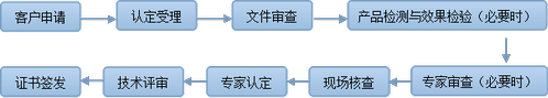文件审查+产品检测或效果检验+现场核查+专家认定;