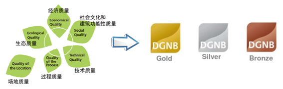 DGNB(Deutsche Gesellschaft für Nachhaltiges Bauen)是德国可持续建筑委员会开发编制的德国可持续建筑评价体系,是世界上第二代可持续建筑评估体系。DGNB从技术质量、过程质量、生态质量、经济质量、社会文化和建筑功能性质量、场地质量六个方面,对参评建筑设计阶段和施工阶段进行综合评价和引导。DGNB分为金、银、铜三个评价等级。