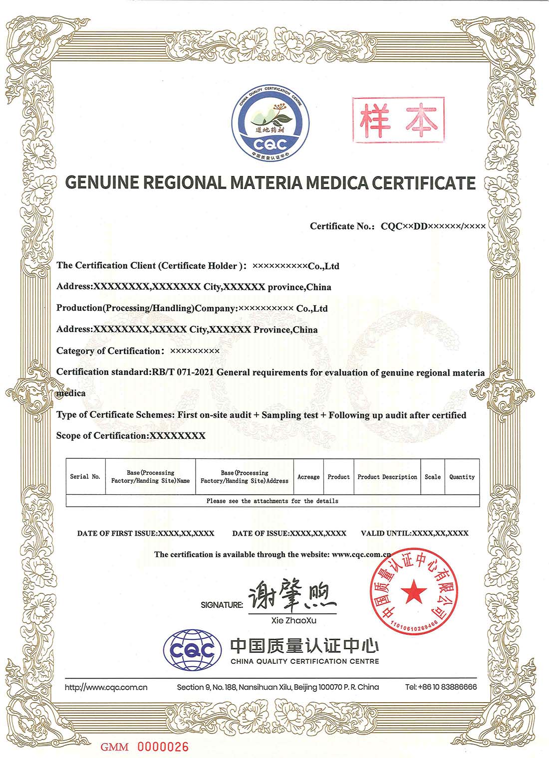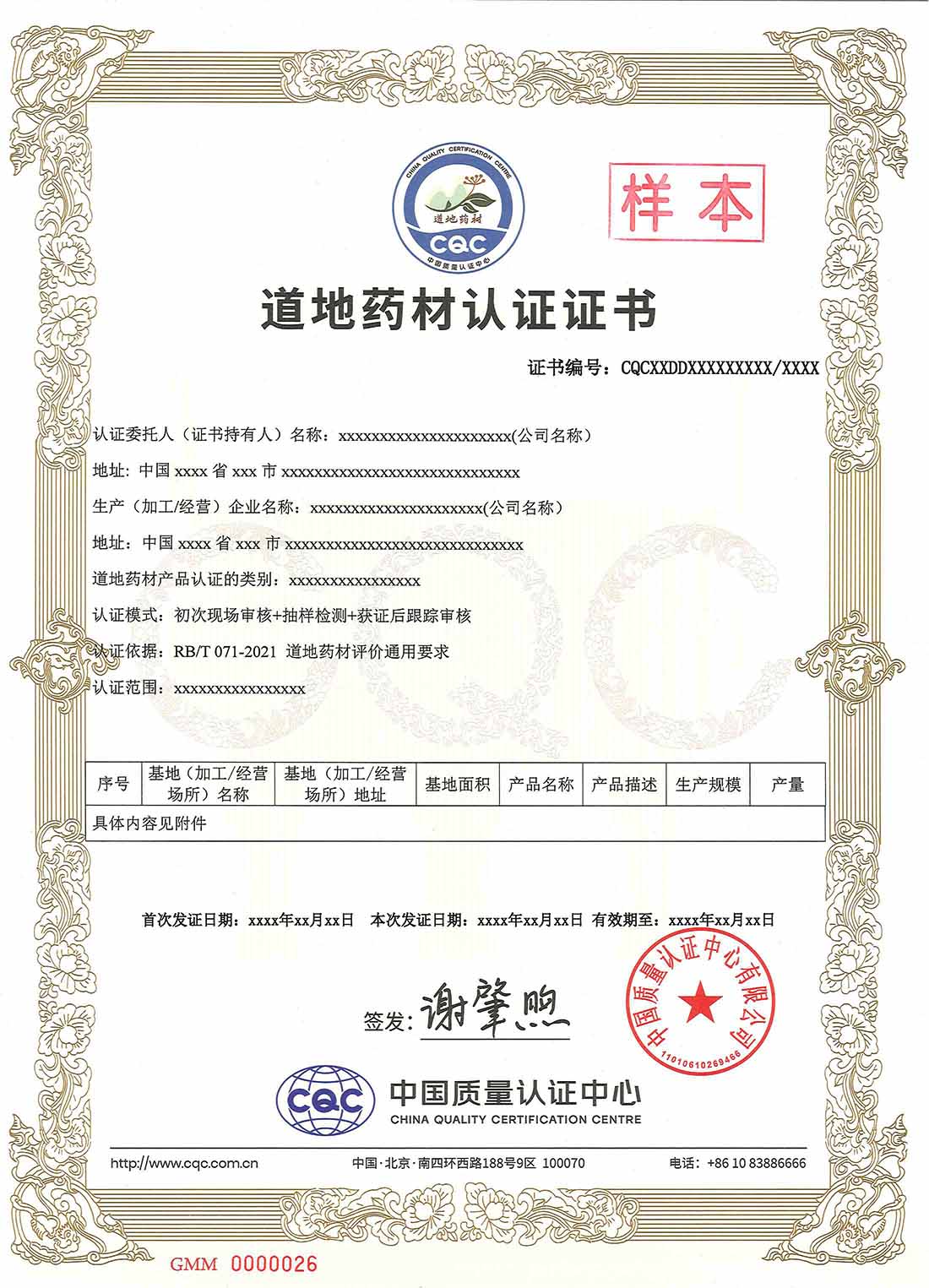 道地药材证书样本