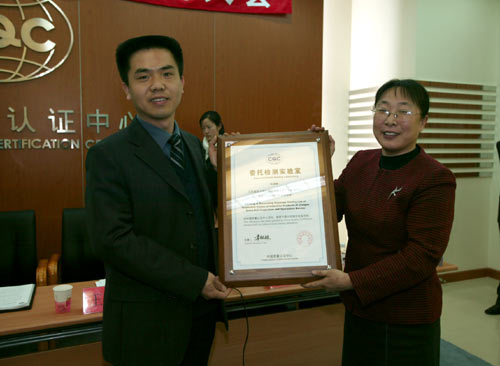 2004年3月16日,CQC举行了签约检测机构授牌仪式,广州合成材料研究院等13家装饰装修材料实验室成为CQC新的委托检测机构,CQC李怀林主任、王克娇副主任到会并为他们颁发了委托证书。至此,CQC的装饰装修材料签约检测实验室达到18家,CQC签约检测实验室已达140家。