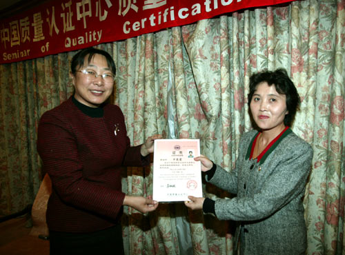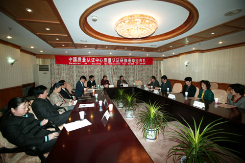 王克娇副主任为顺利完成培训课程的学员颁发了培训证书,赞扬了培训期间代表团认真刻苦的学习态度,并希望这种在质量认证领域的交流合作能进一步促进中朝两国的友谊,促进两国经济与贸易的发展。