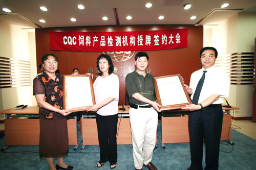 CQC与国家饲料质量监督检验中心(北京)、青岛市产品质量监督检验所等32家饲料产品检测机构签订委托检测协议