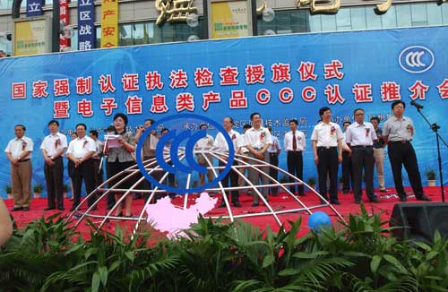 8月1日,由北京市质量监督局、北京出入境检验检疫局、海淀区政府联合主办的“国家强制认证执法检查授旗仪式暨电子信息类产品3C认证推介会”在北京中关村海龙大厦广场隆重举行。国家质检总局局长李长江、北京市副市长范伯元、国家认监委主任王凤清等领导出席了此次活动。