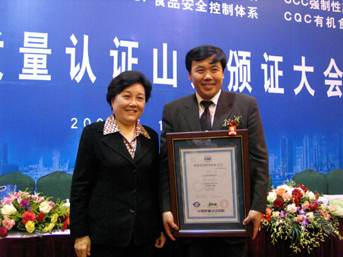 国家认监委王凤清主任(左)亲自为青岛市委督查室颁发CQC认证证书