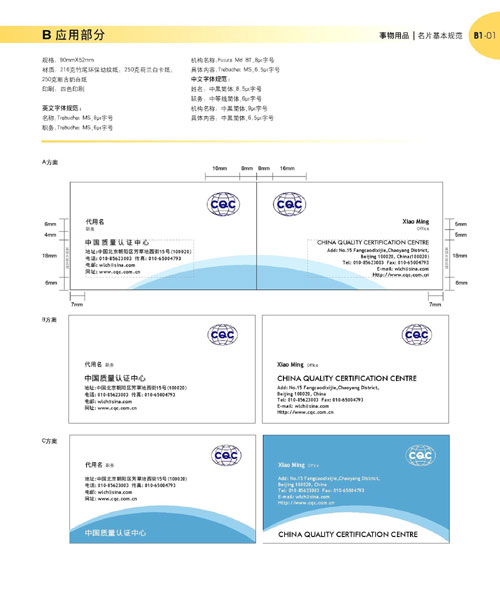 CQC新手册制作完成 随着市场环境的变化和中国质量认证中心(CQC)自身发展的需要,原CQC的VIS(Visual Identity)系统在基础形象的表现构成上和应用展开方面已不能充分满足环境和载体要求,为此,CQC委托企业形象管理机构从强化型的VIS战略出发,对CQC的原标识进行适当的提炼整合,对于应用系统的设计亦按照时代的变化需求予以全面开发。经过近半年的策划、调研、设计、评定和三次修订,CQC新的VIS系统现已全部完成,新的CQC机构形象视觉识别手册也于近日制作完成,并将于近日将手册下发至CQC各分支机构。