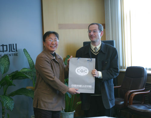 王克娇副主任(左)代表CQC向CEBEC代表赠送礼品