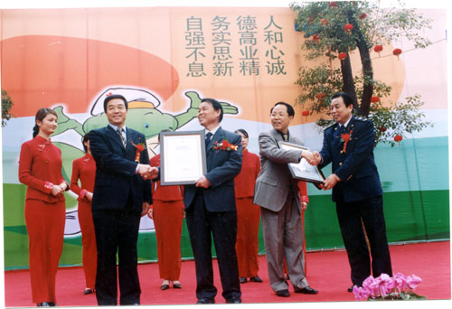 CQC李怀林主任(左一)和湖南检验检疫局伍建国副局长(右一)为湖南省儿童医院颁发证书