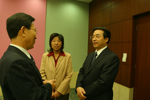 CQC李怀林主任(右一)与韩国KTL同行亲切交谈