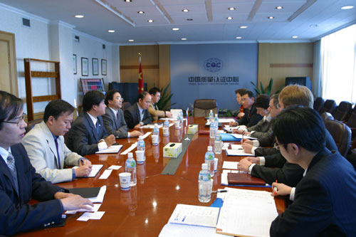 2003年11月20日下午,法国Bureau Veritas(BV)公司副总裁Le Maitre先生、LCIE公司认证业务董事Heller女士及德国凯思(Cisema)公司董事长Fischer先生一起拜访CQC。李怀林主任代表CQC会见来宾。