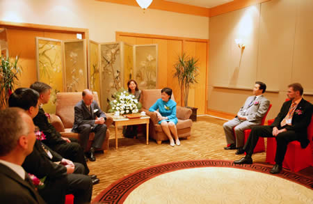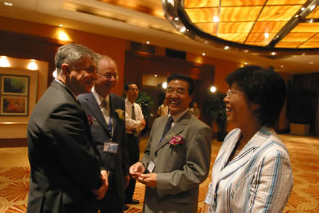![]() IECEE中国国家认证机构主席、CQC李怀林主任,CQC陆梅副主任与IECEE主席、秘书长亲切交谈 2005年6月29日,国际电工委员会电工产品合格测试与认证组织认证管理委员会(IECEE -CMC)第八届年会在中国上海举行。本次会议由国家认证认可监督管理委员会(CNCA)与中国质量认证中心(CQC)共同承办。CNCA主任、国际电工委员会(IEC)中国国家委员会主席王凤清,上海市市长韩正出席开幕式并讲话。IECEE主席、秘书长、副主席、司库(财务官员)以及来自40余个国家和地区的成员机构、国家认证机构的代表100余人参加了会议。