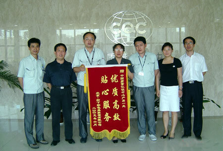 2005年7月5日下午,北京松下彩色显象管有限公司(BMCC)的品质技术部翁迈新部长一行给中国质量认证中心(CQC)送来写有“优质高效、贴心服务”八个大字的锦旗,表示对CQC优质服务的感谢之情,王克娇副主任代表CQC接受了锦旗。