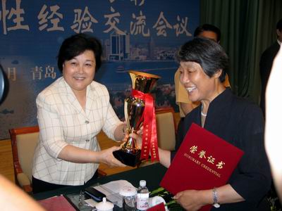 王凤清会长为优秀管理企业的代表颁发“CQC2006年度卓越管理奖”流动奖杯和荣誉证书