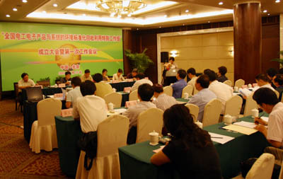 2006年7月25日,全国电工电子产品与系统的环境标准化回收利用特别工作组成立大会暨第一次全体会议在京召开。本次会议由国家发改委环资司、国家标准委高新技术部主办,中国质量认证中心(英文缩写CQC)承办,中国标院资源与环境标准化研究所、中国家电研究院协办。来自国家标准委、全国人大环资委、国务院法制办、国家发改委、国家质检总局、信息产业部、国家环保总局及国家认监委等相关部门的领导出席了成立大会。