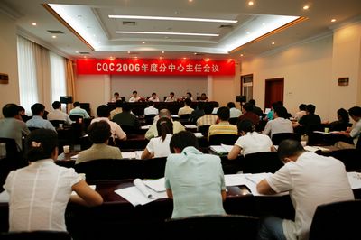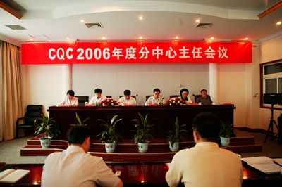 2006年7月31日—8月1日,中国质量认证中心(英文缩写CQC)在京召开2006年度分中心主任会议,全面传达落实质检工作研讨会议和全国认证机构工作会议、强制性产品认证工作会议精神,总结上半年工作,统一思想,鼓舞干劲,争取圆满完成今年各项任务。国家认监委党组成员、总工程师刘卫军出席会议并发表了讲话,CQC主任李怀林结合质检工作研讨会议精神作2006年上半年工作报告。