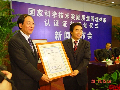 ![]() 近日,科技部国家科学技术奖励工作办公室(以下简称“奖励办”)召开国家科学技术奖励质量管理体系认证证书颁发暨新闻发布会。国家质检总局副局长蒲长城、科技部副部长程津培出席了颁证仪式。中国质量认证中心(英文缩写CQC)主任李怀林向科技部国家科学技术奖励工作办公室颁发了认证证书。 奖励办是负责国家科学技术奖励工作的日常办事机构。今年初,奖励办成功导入ISO9001质量管理体系, |