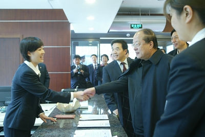 认证中心是李长江局长春节前考察慰问的第一家总局直属单位。下车伊始,李长江局长首先视察了认证中心新办公楼,慰问干部职工。每到一处,他都要嘘寒问暖,仔细地询问干部职工的工作和生活情况,亲切地给大家送去新春祝福。在办公楼前小广场,他认真察看办公楼布局和周边环境;在客服中心前台,他向工作人员了解岗位职责和方便客户的措施;在青年文明号公示栏前,他对创建工作提出了具体指导意见;在前往会议室途中,他叮嘱大家一定要注意节日安全保卫工作;在视察最后,他仔细观看了荣誉室展出的文字、图片和实物资料,和大家一起回顾认证中心的发展历程……,在短短的80分钟里,认证中心到处是掌声和笑语,一句句嘱托,一声声问候,认证中心每一名干部职工都感受到了总局的关心和温暖。