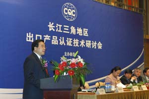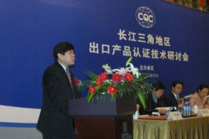 为适应后WTO时期的新形势,帮助中国企业进入国际市场,促进我国对外贸易发展。2007年3月19日,由中国质量认证中心(CQC)主办的“长江三角地区出口产品认证技术研讨会”在江苏省昆山市胜利召开,国家认监委刘卫军总工程师、国家商务部世贸司柴小林副司长、江苏出入境检验检疫局郭喜良副局长、江苏省技术监督局张前副局长、昆山市人民政府汪国桢副市长、IECEE秘书长Pierre de RUVO 先生、中国质量认证中心李怀林主任,以及来自商务部上海特派办、上海市外经贸厅、浙江省外经贸厅、江苏省外经贸厅、昆山出入境检验检疫局的有关领导,企业和检测机构代表、新闻媒体代表共170多人出席了会议。会议为10家企业颁发了CB认证证书。