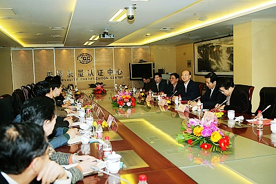认证中心副主任吴玉平、李杰、孔祥月、陈伟陪同视察并与有关部门负责人参加了工作汇报会。
