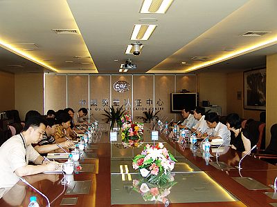 2009年6月25日下午,集团公司党委书记朱俊敏一行到中国质量认证中心,就新形势下如何有效开展基层党建工作进行调研,中心党委书记王克娇、党委副书记吴玉平、部分党支部代表及党办相关工作人员参加了座谈会。