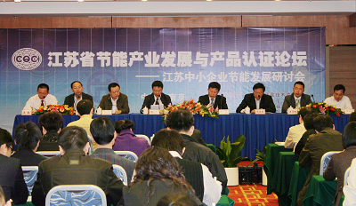 由江苏省质量技术监督局、江苏省中小企业局、中国质量认证中心(英文缩写CQC)联合举办、CQC南京分中心(江苏省公共技术服务平台)承办的“江苏省节能产业发展与产品认证论坛”于2009年10月20日在江苏南京隆重召开。江苏省质量技术监督局张前副局长、中国质量认证中心陈伟副主任、江苏省中小企业局相关领导和家用电器、电子信息、电力设备、建筑材料等生产企业代表共150人参加了论坛。