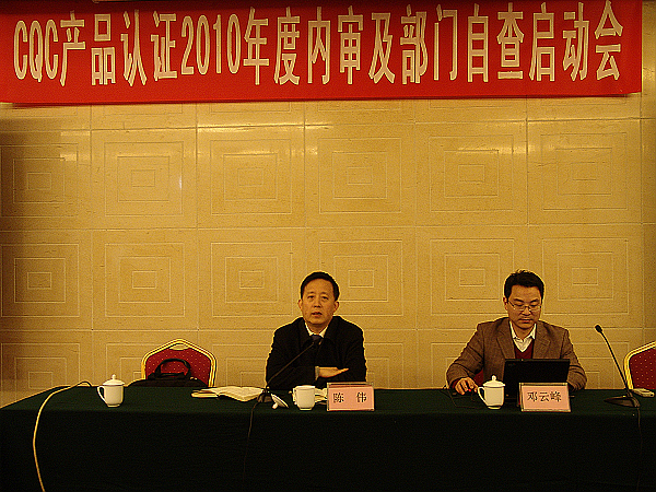 2010年3月11至12日,中国质量认证中心(英文缩写CQC)在京召开2010年度产品认证内审和部门自查工作启动会议。CQC副主任陈伟出席会议,各业务部门质量代表、各分中心质量部部长、内审员代表等40余人参加会议。