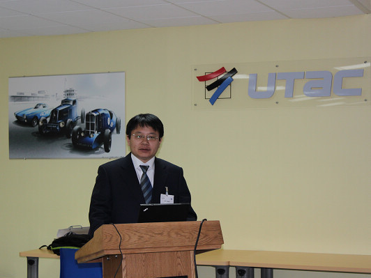 图为CQC副主任吴玉平在巴黎认证研讨会进行现场宣讲