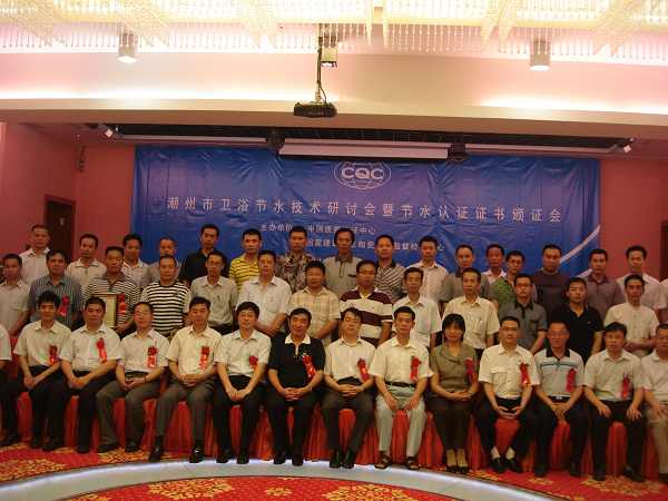 2010年6月22日,由中国质量认证中心和国家建筑卫生陶瓷质量监督检验中心主办的潮州市卫浴节水技术研讨会暨节水认证证书颁证会在潮州市召开。潮州市各级政府部门、地方两局领导出席仪式。