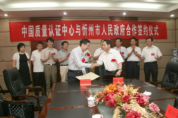 2010年9月3日,中国质量认证中心(英文缩写CQC)与山西省忻州市政府就“发展忻州市生态农业产业,打造地方特色农产品食品品牌”举行签约仪式。CQC副主任李杰,忻州市委副书记郑连生,副市长王士桦等出席签约仪式。