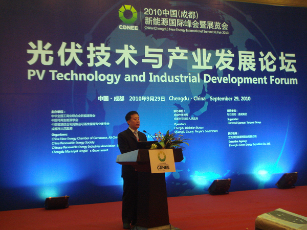 2010年9月28日,中国质量认证中心(英文缩写CQC)副主任陈伟应邀参加2010中国(成都)新能源国际峰会暨展览会,并作主题发言。本次峰会以“新能源、新机遇、新跨越”为主题,由成都市人民政府联合中华全国工商业联合会新能源商会、中国可再生能源学会、中国资源综合利用协会可再生能源专业委员会主办,联合国开发计划署、联合国工业发展组织、德国勃兰登堡州经济发展局、中国核能行业协会、中国力学学会、中国空气动力学会风能空气动力学专业委员会、四川核技术应用协会和四川核学会协办,来自联合国开发计划署、联合国工业发展组织、葡萄牙新能源部、美国可再生能源协会、欧洲光伏工业协会、世界清洁能源委员会、世界风能协会、中欧清洁能源中心等十多个国家的30多家新能源机构以及以杜邦、西门子、GE、阿海珐为代表的30余家国外知名企业代表900余人参加,110余家国内外知名新能源企业在展览会上展示了新能源产业发展取得的最新成果。