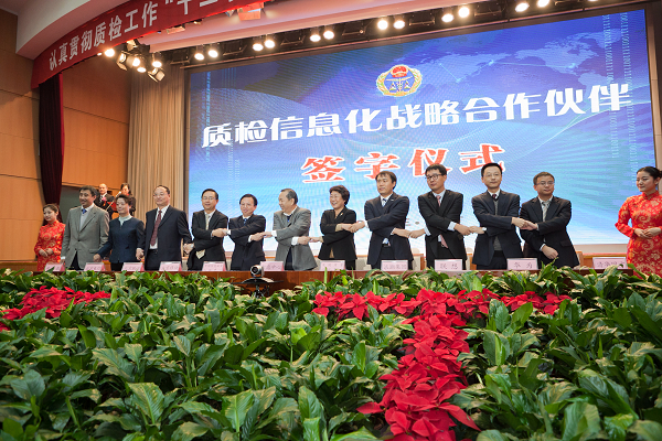 近日,在首届中国质检信息化成果展览会期间。王克娇主任代表中心与国家质检总局信息中心签订战略合作协议,双方将携手推进中心CA技术在总局信息化建设中的应用。展会期间,总局领导参观中心信息技术化成果展,中心工作人员介绍了电子认证的特点与作用以及在系统内外的典型应用案例。(中认环宇公司 供稿)
