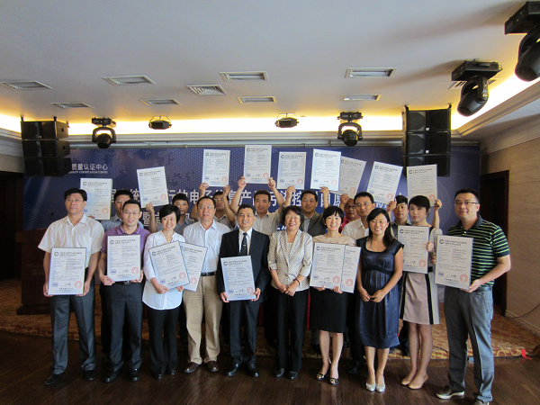 2012年7月18日,中国质量认证中心在京召开国推RoHS认证研讨会暨首批获证企业颁证仪式,为三星、华硕、步步高、创维、LG、戴尔、长虹等15家电子信息行业知名企业颁发首批国推RoHS认证证书。中心王克娇主任、国家认监委沈军处长、工信部黄建忠处长到会讲话,并为获证企业颁证。