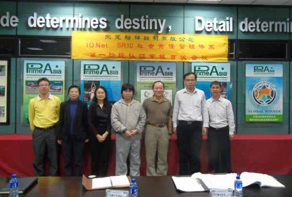 日前,中国质量认证中心颁发了首张,同时也是亚洲第一张IQNet SR10证书(国际认证联盟社会责任管理体系),获证企业为东莞裕祥鞋材有限公司。