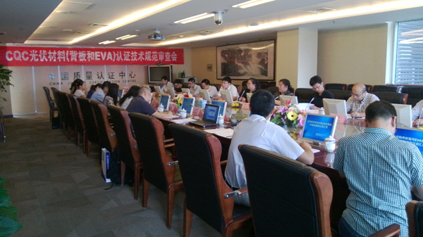 2013年9月3日,由中国质量认证中心(简称CQC)编制的两项光伏材料(背板和EVA)认证技术规范顺利通过了专家组审查。来自国家认监委、标委会、认证机构、检测机构、材料企业、电站业主和保险公司等单位的20余位领导和专家参加了审查会。