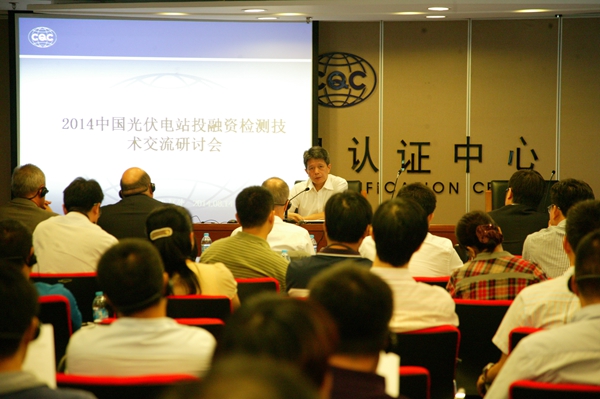 8月14日,“2014中国光伏电站投融资检测技术交流会”在京顺利召开,此次会议主要针对光伏电站投融资技术服务环节的质量风险管控措施进行深入研讨。会议由中国质量认证中心(以下简称CQC)、国家发改委国际合作中心(以下简称ICC)和德国VDE检测认证集团(以下简称VDE)联合主办,来自发改委能源所、中国电力科学院、中科院电工所、中国民生银行、国电光伏、京能集团、TUV(南德)等单位的近60余人参加会议。