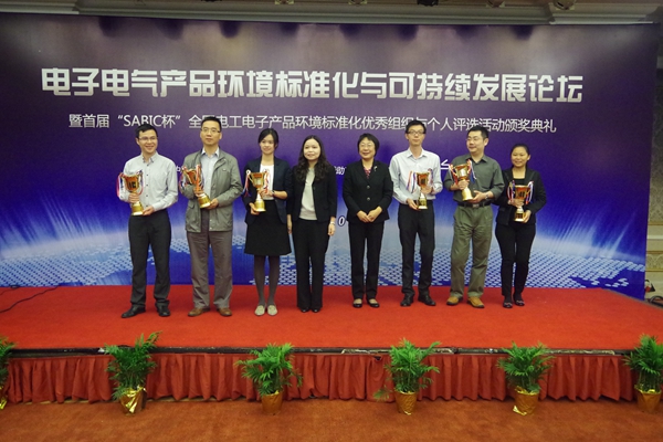 2014年10月24日,中心在上海举办电子电气产品环境标准化与可持续发展论坛暨首届“SABIC杯”全国电工电子产品环境标准化优秀组织与个人评选活动颁奖典礼。共有来自全国电子电气行业的企业代表约150余人参会。中国质量认证中心主任王克娇出席并致辞。