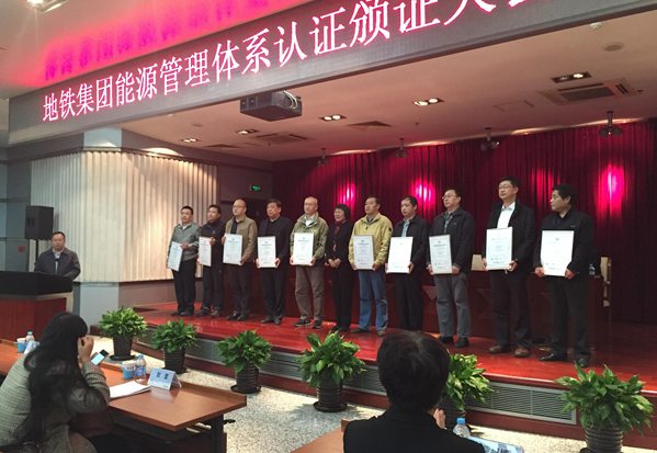 2015年10月27日,中心主任王克娇为北京市地铁运营有限公司颁发了国内首张轨道交通行业的能源管理体系认证证书。 (工厂检查部 供稿)