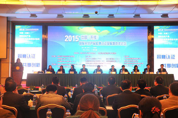 2015年11月4日,2015中国(无锡)国际光伏产品检测认证及标准技术论坛在江苏无锡成功举办。国家认监委副主任刘卫军、国家能源局新能源司副司长梁志鹏、中国质量认证中心主任王克娇出席论坛并讲话,无锡市副市长曹佳中、无锡市质监局局长裴志良为论坛致辞。来自光伏生产企业、电站业主、检测认证机构、科研单位和高等院校的近300名代表参加了此次会议。