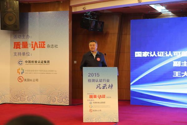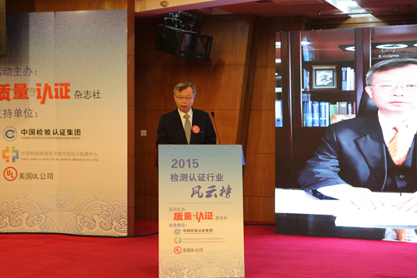 1月16日,由质量与认证杂志社主办的年度评选“大戏”——“2015检测认证行业年度风云榜”发布会暨颁奖典礼在北京隆重举行。国家质检总局科技司司长武津生、国家认监委副主任王大宁、中检集团总裁张利强出席发布会并致辞。来自国家质检总局、国家认监委、国家标准委和科研机构、企业界、检测认证机构、新闻界的代表近200人参加发布会。