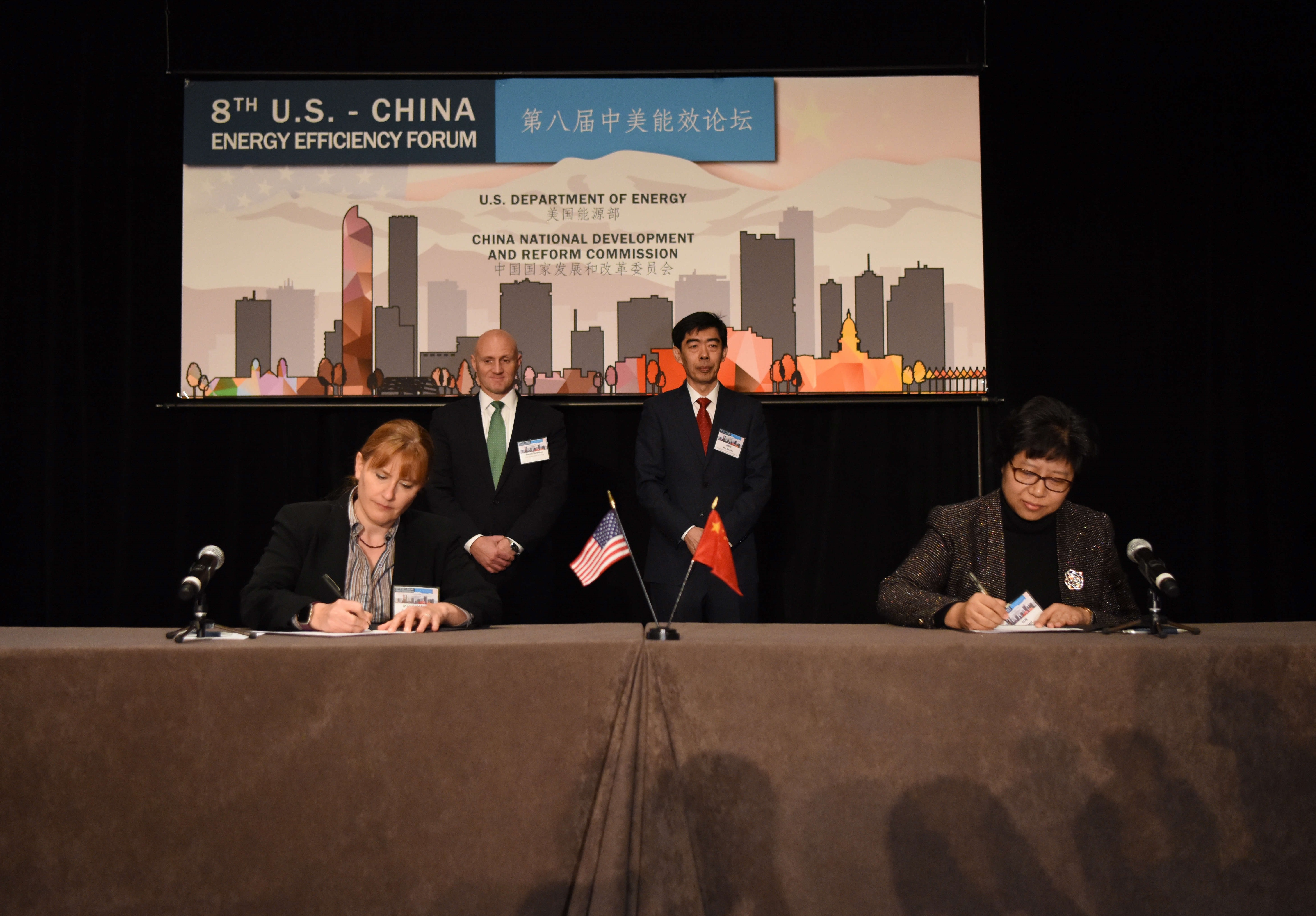 2017年10月13日,由中华人民共和国国家发展和改革委员会(简称“国家发改委”)和美国能源部主办的第八届中美能效论坛在美国科罗拉多州丹佛市召开。国家发改委环资司司长任树本、美国能源部可再生能源办公室代理助理部长丹尼尔·西蒙、丹佛市副市长哈皮·哈尼斯出席论坛并致辞。中检集团领导、中心主任陆梅率团参加了此次论坛,代表中心与美国西北太平洋国家实验室(简称“PNNL”)签署了《关于在合同能源管理与能效提升领域加强合作的备忘录》(简称“备忘录”),并被列入中美能效合作重要成果之一。
