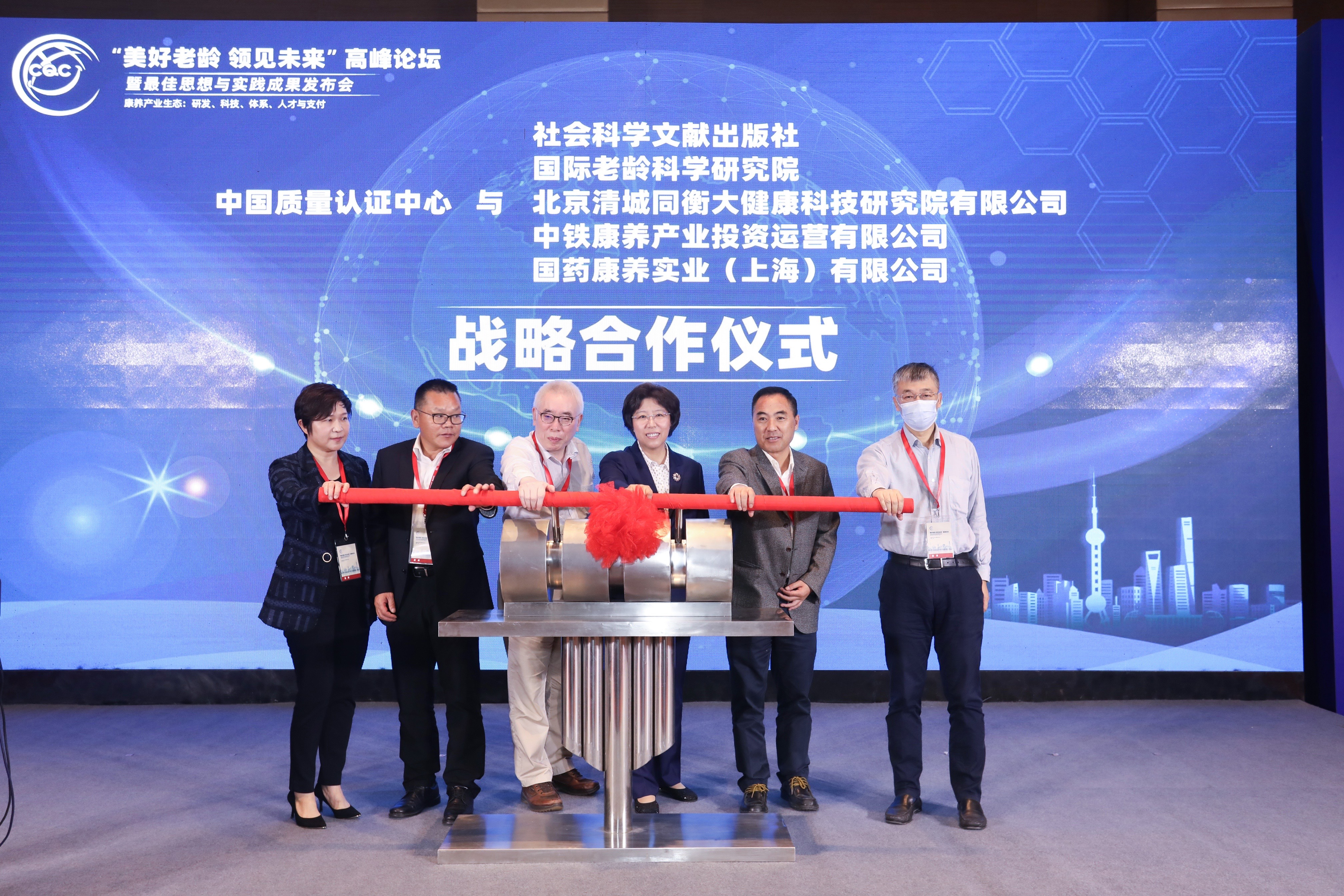 现代服务业评测中心与中国社会科学文献出版社、国际老龄科学研究院、北京清城同衡大健康科技研究院、中铁康养产业投资运营有限公司及国药康养实业(上海)有限公司共同启动了质量提升战略合作仪式,未来将在康养产业高质量发展专题研究、养老健康服务质量评测、老龄友好城市、健康社区等一系列康养议题和项目上深入展开合作。