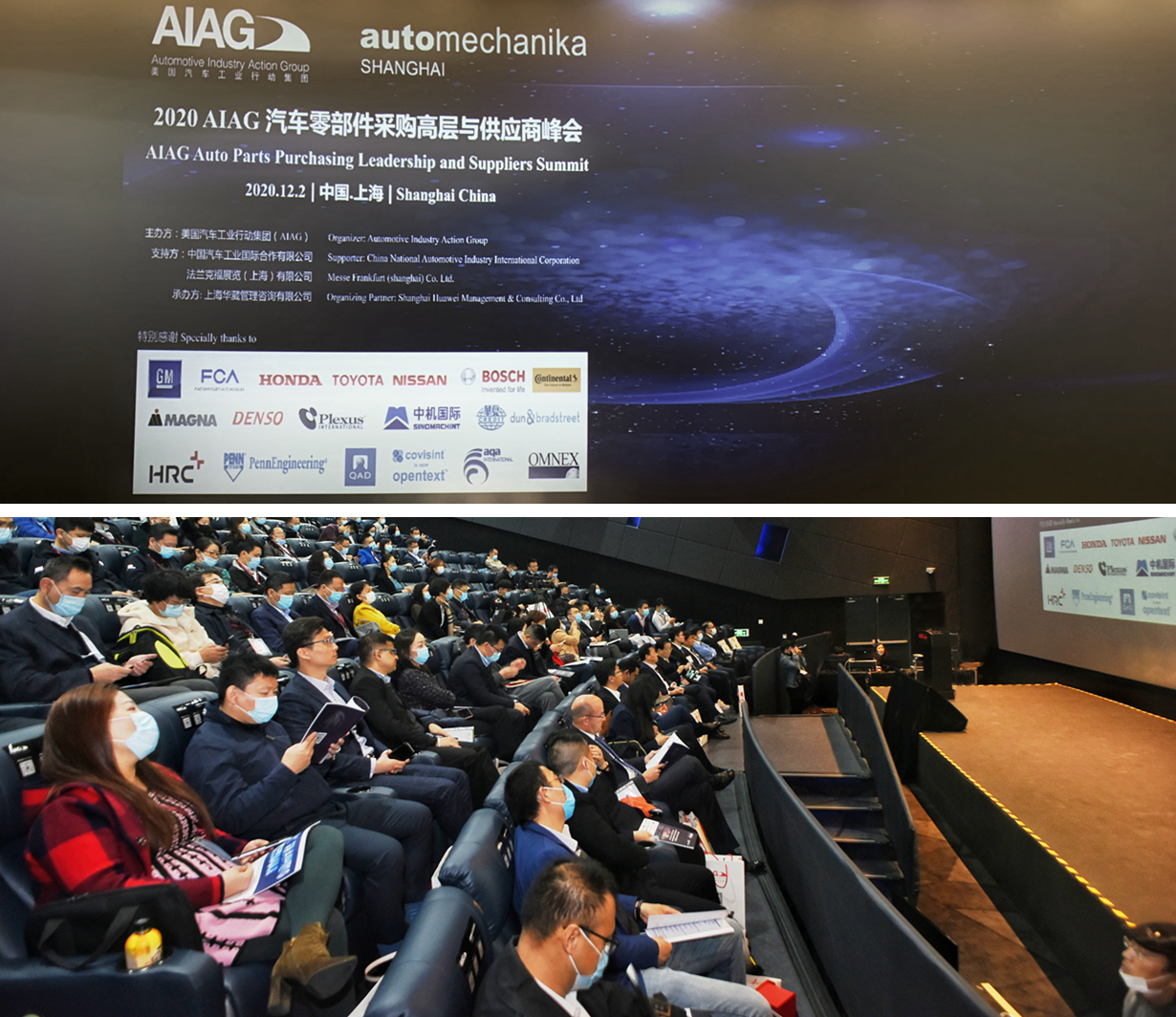 2020年12月2日,2020 美国汽车工业行动集团(AIAG)汽车零部件采购高层与供应商峰会在上海召开,中检集团副总裁、中国质量认证中心主任陆梅受邀发表视频主题演讲。AIAG首席执行官J. Scot Sharland先生致视频开幕词,AIAG亚太区董事总经理陈以龙博士主持会议。