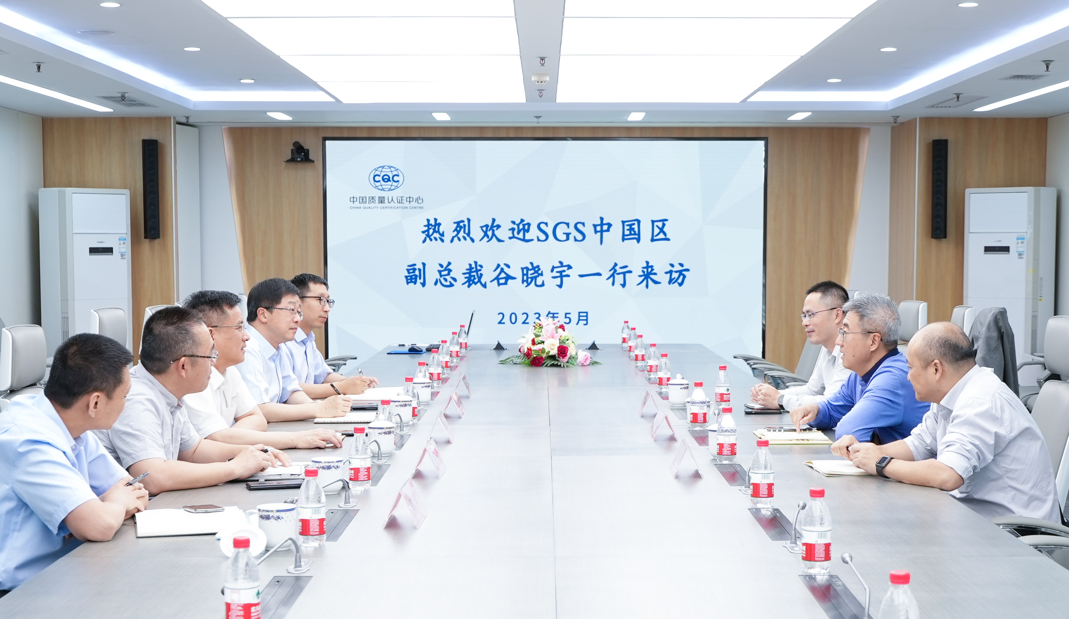2023年5月23日,SGS通标标准技术服务有限公司(以下简称“SGS”)中国区副总裁谷晓宇一行到访认证中心。认证中心主任谢肇煦对一行人的到访表示欢迎。SGS中国互联与产品事业群总经理赵晖、SGS华南区总经理柯赞贤,认证中心副主任刘江及相关部门负责人参加会谈。