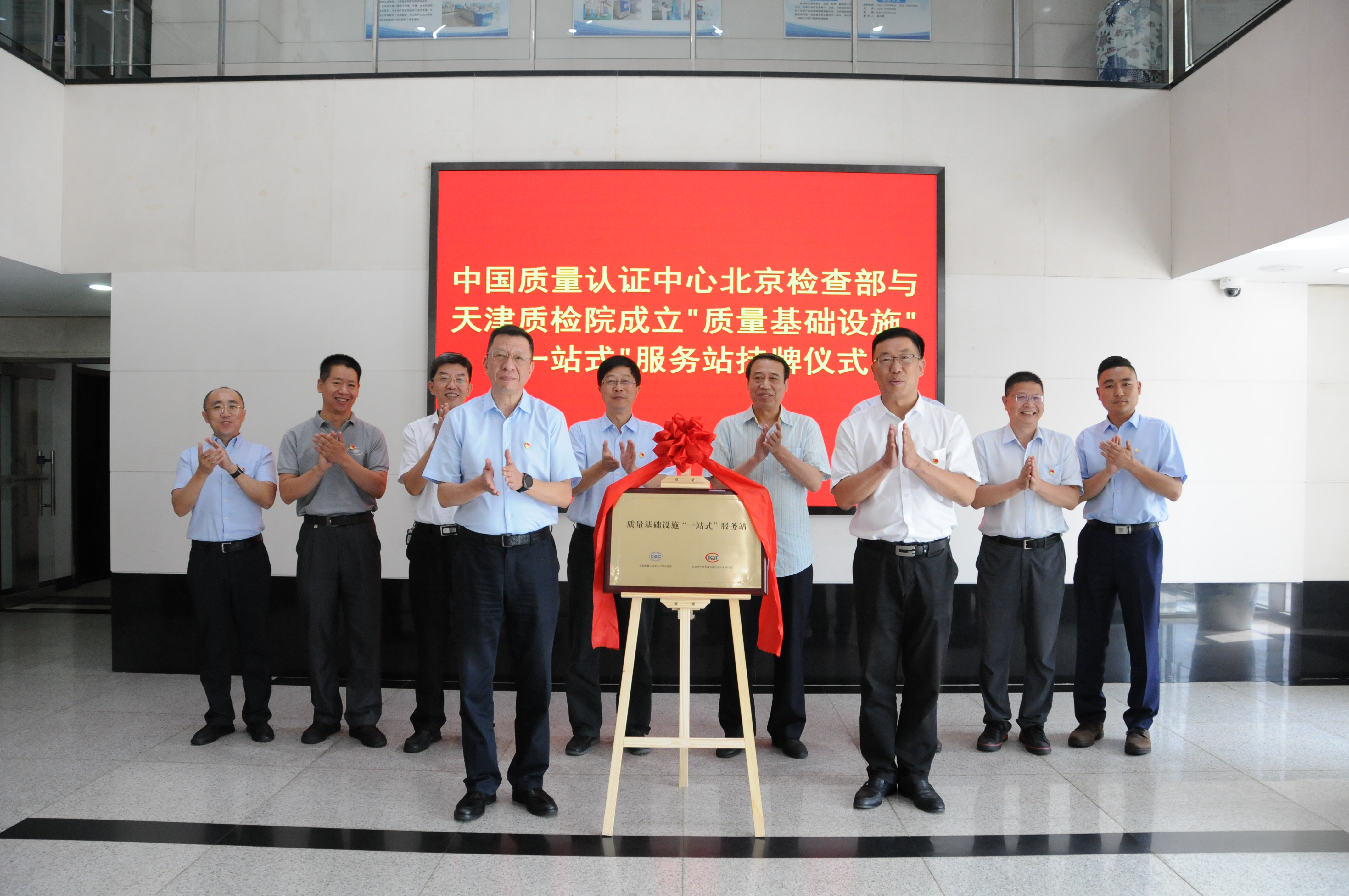 2023年8月25日,由认证中心北京检查部与天津市产品质量监督检测技术研究院(以下简称“天津质检院”)共同筹建的质量基础设施“一站式”服务站挂牌成立。天津市市场监督管理委员会二级巡视员张闽,认证中心党委委员、副主任刘江出席活动。