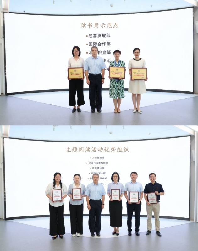 李国振代表中国质量认证中心党委对获奖集体表示祝贺,对中国质量认证中心长期开展职工阅读活动所取得的成果给予了充分肯定。他同时从深入开展职工书屋矩阵式建设、持续发挥思想政治引领阵地作用等方面提出进一步要求,鼓励干部职工要做到学思用贯通、知信行统一,自觉用习近平新时代中国特色社会主义思想坚定理想、锤炼党性、指导实践、推动工作;要求工会要进一步加强政治思想引领,不断开拓思路、创新工作方式,积极推动工会改革,充分激发基层活力、持续增强企业凝聚力,为建设世界一流企业提供强大合力。