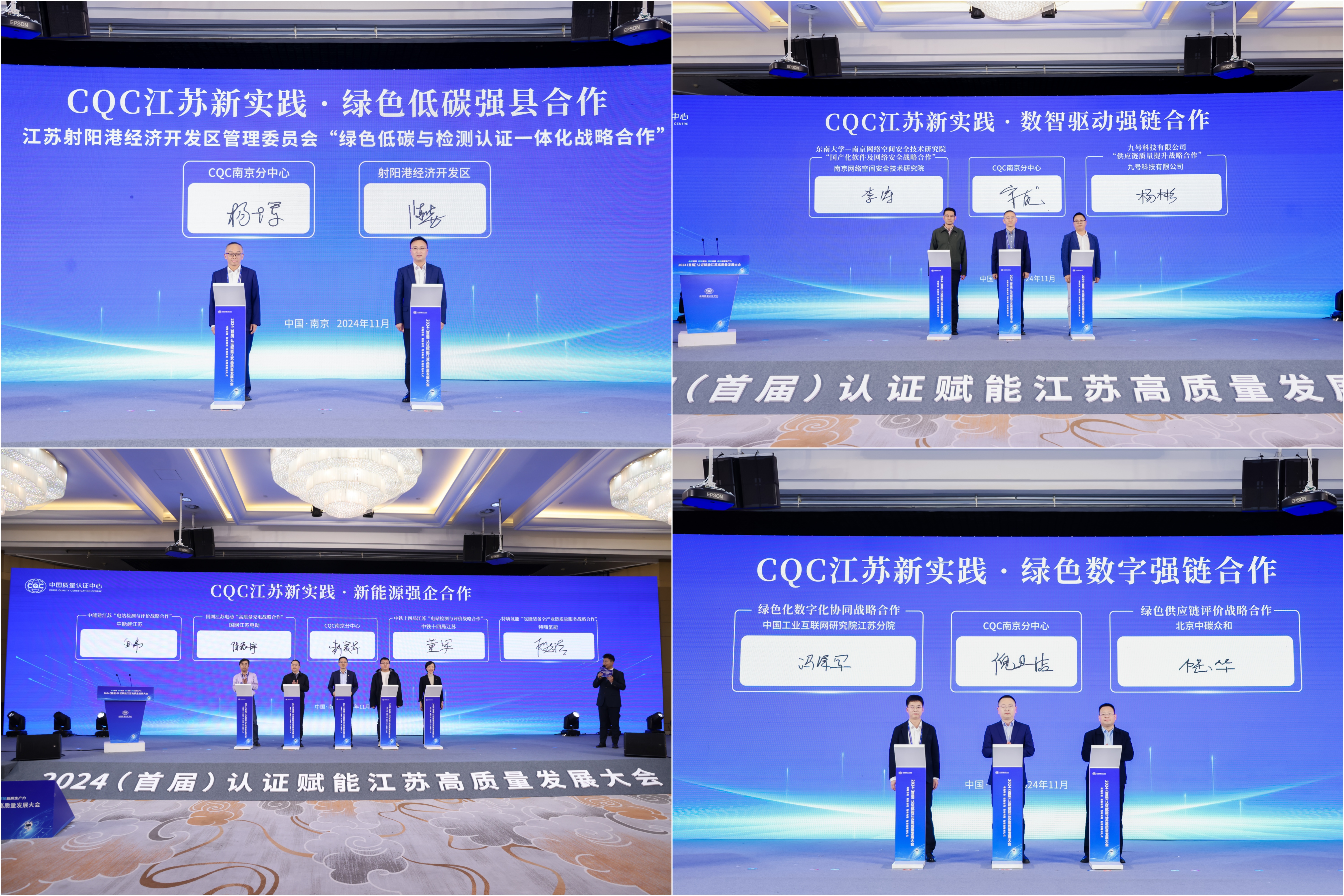 11月12日,由中国质量认证中心主办的2024(首届)认证赋能江苏高质量发展大会在南京成功举办。会议得到江苏省发展和改革委员会、江苏省工业和信息化厅、江苏省生态环境厅、江苏省市场监督管理局指导。