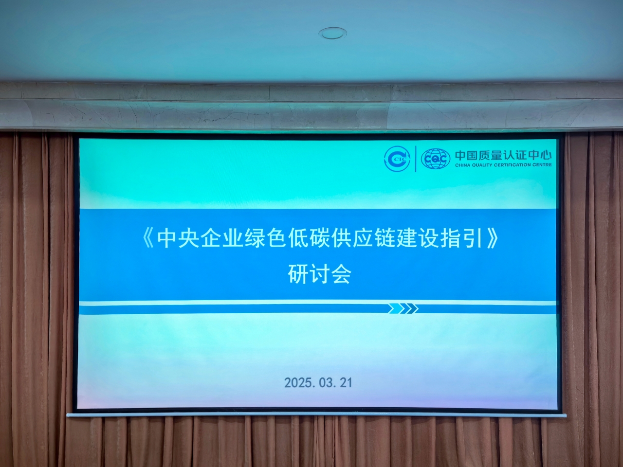 近日,中国质量认证中心受国务院国资委社会责任局委托,在京组织召开了《中央企业绿色低碳供应链建设指引》研讨会。国务院国资委社会责任局环保低碳处处长吕昆,以及来自国家电网有限公司、鞍钢集团有限公司、中国宝武钢铁集团有限公司、中国资源循环集团有限公司、国家电力投资集团有限公司、中国石油化工集团有限公司、中粮集团有限公司、中国华能集团有限公司、中国大唐集团有限公司、中国国际工程咨询有限公司、中国节能环保集团有限公司、中国中化控股有限责任公司、中国广核集团有限公司、中国移动通信有限公司等企业的30余位代表参加会议。中国质量认证中心党委委员、副主任徐少山主持会议并详细介绍了中国质量认证中心牵头开展的国务院国资委2024年度“揭榜挂帅”研究课题——“中央企业绿色供应链管理体系研究”课题成果。