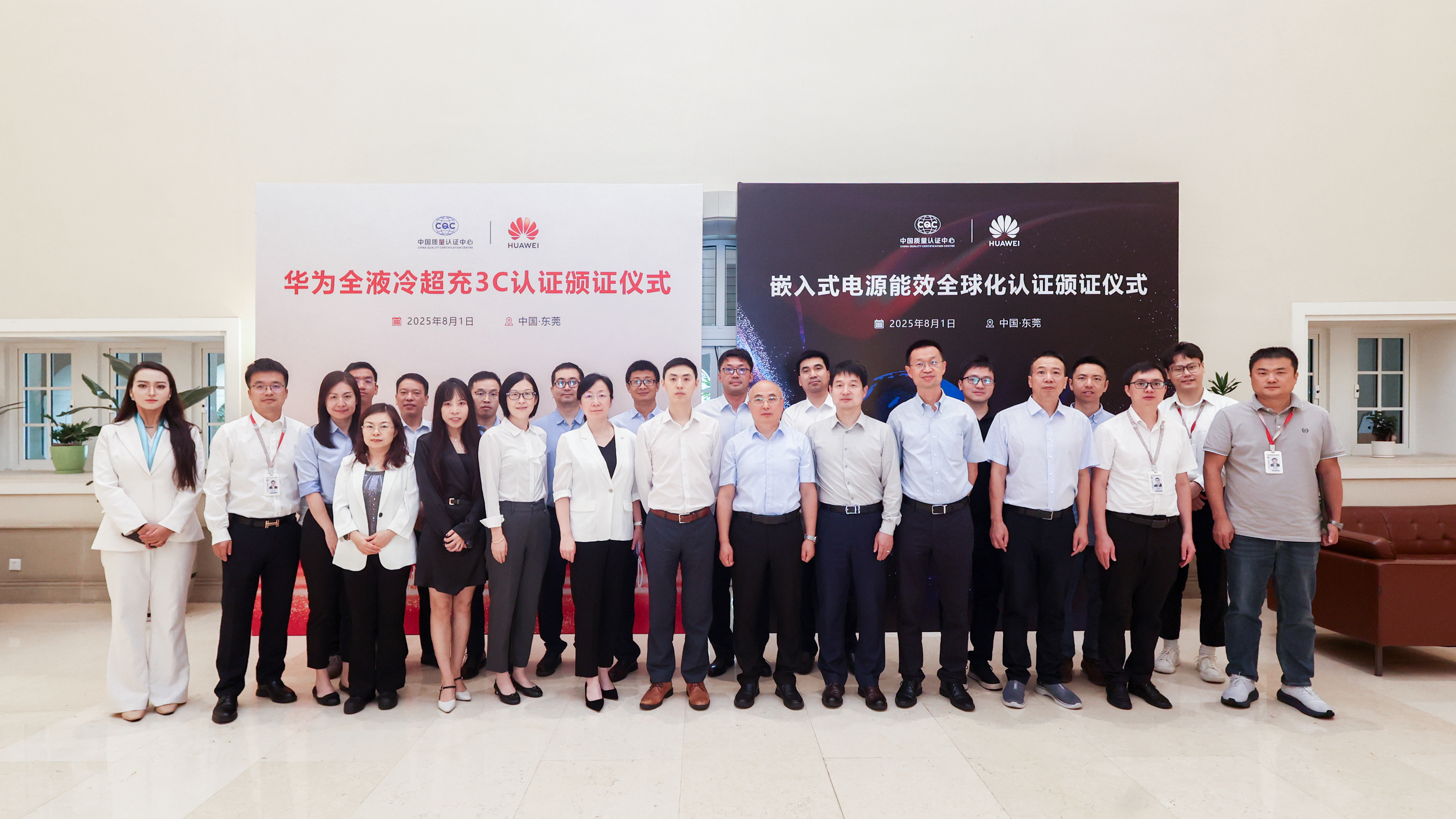 期间,中国质量认证中心为华为颁发了全液冷超充行业首张大功率电动汽车供电设备CCC证书及嵌入式电源能效分级认证证书。