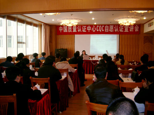 转变观念 主动认证 --CQC在浙江乐清召开CQC自愿性产品认证宣传会议 2003年12月26日,由CQC主办,上海市电子仪表标准计量测试所协办在浙江乐清召开了CQC电子类自愿性产品认证宣讲会。参加此次宣讲会的有来自浙江省内的生产涉及安全关键元器件的48家中外企业及6家咨询机构。